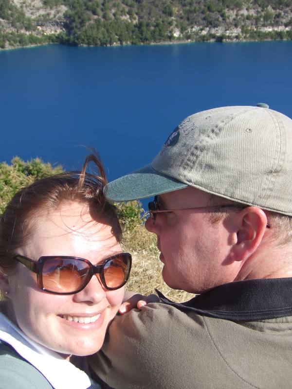 tijdsgrens; de klok moet vreemd genoeg een half uur terug. Verder gelden er voor elke staat quarantaine regels voor fruit, groente en planten. Je zal maar op de staatsgrens wonen; kun je niet eens boodschappen doen over de grens. In Mount Gambier een toertje gedaan bij de Blue Lake, een meer in een vulkaankrater, dat elke zomer fel blauw kleurt en in de winter weer grijs.