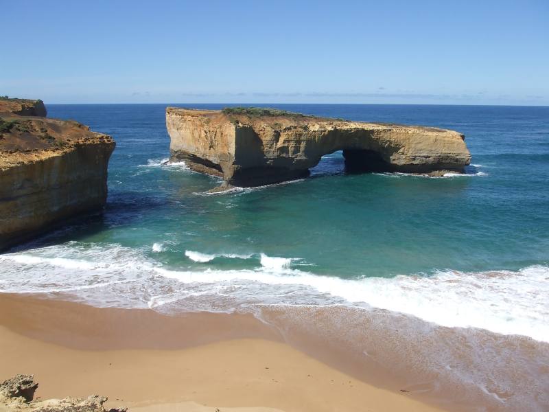 uitzicht, o.a. bij London Bridge, een door erosie gevormde limestone boog in zee. In Port Fairy geluncht, een pittoresk plaatsje aan zee. Na de lunch even een rondje gelopen. ’s Middags gereden naar Mount Gambier. We zijn de staatsgrens gepasseerd en daarmee de