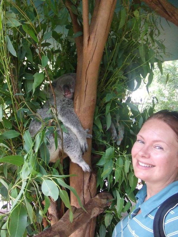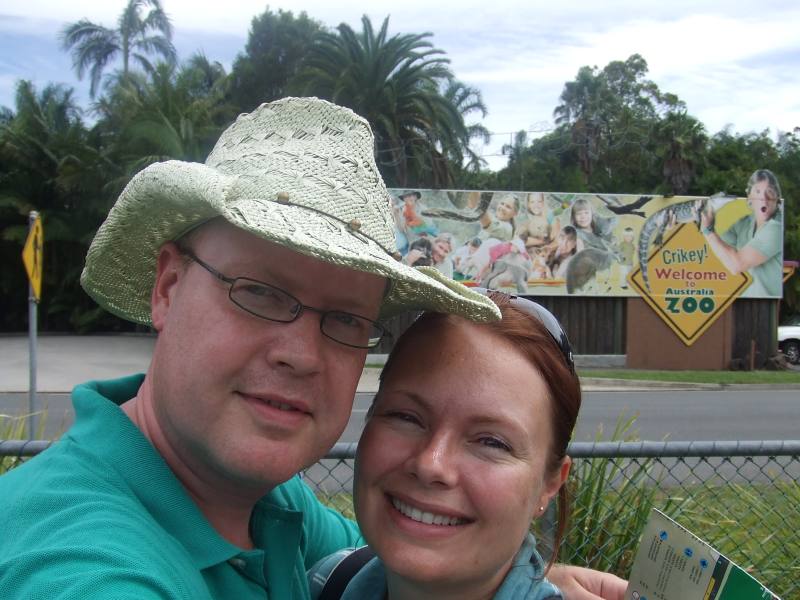 Om 9.00 uur waren we na een half uurtje rijden bij Australia Zoo, de dierentuin van Steve Irwin, de Crocodile Hunter. Dieren zitten hier niet in een kooi en je kunt er dichtbij komen. Ook kun je dieren aanraken (bijv. een koala aaien of een olifant voeren). Overal in het park zie je foto’s van de