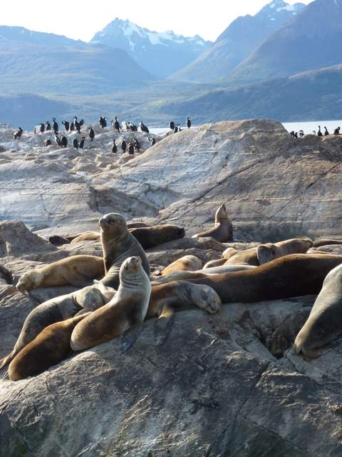 zijn geweest) en lang geluncht. Eenmaal buiten bleek het te zijn opgeklaard; bovendien was in de bergen een laagje sneeuw gevallen. ’s Middags een prachtige boottocht gemaakt door het Beagle kanaal. Het is hier uitzonderlijk helder met prachtige vergezichten naar Argentinië en Chili. En natuurlijk vogels en zeeleeuwen gezien. Ook een rondje gelopen op een verlaten eilandje.