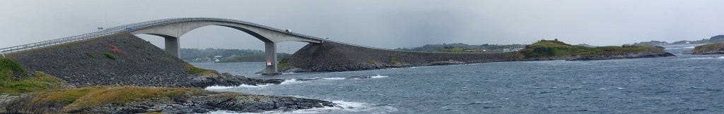 Vandaag rijden we de Atlanterhavsveien, de Atlantic Ocean Road. Deze weg met veel bruggen, die eilandjes verbinden, wordt veel gebruikt in autocommercials. Vandaag is het geen commercial-weer, met veel buien en wind. Wel spectaculair. Er zijn verschillende uitzichtpunten waar we stoppen. De highlight is een grote brug, die met een bocht over het water gaat. We rijden er twee keer over, omdat we voor de vervolgroute iets terug moeten rijden. Voor de lunch maken we noodles in de bus om op te warmen. We hebben vandaag als laagste temperatuur 11 graden gezien, hartje zomer. Het voelt extra koud vanwege de regen. Lang leve onze regenjassen.